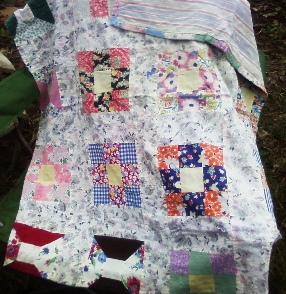 This quilt was made about 1978-9 for my daughter, Kim. It is double knit with a light weight double knit on the back. She was 6 years old and we were very short of bedding at the time. My mother-in-law, Ruth, gave me a bag of scraps and thus Kim had a quilt. Now she has it on the bed of one of her children. It is twin bed size, big enough to cover her bunk bed when she was little. Patchwork is a common method of making a fast quilt.